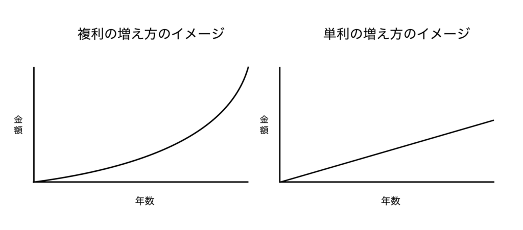 単利は「元本にだけ利息がつく」のに対し、複利は「増えた分にも利息がつく」のが特徴です。
