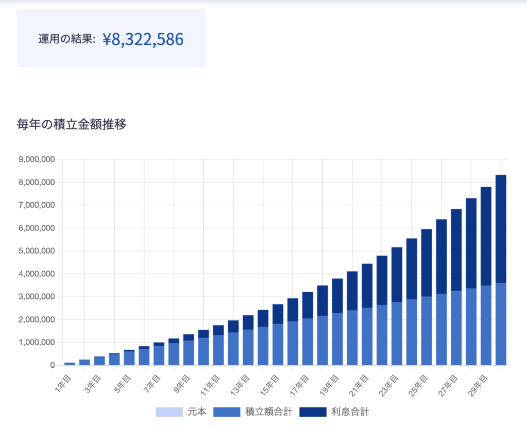最初はあまり増えないため不安になるかもしれませんが、20年・30年と続けることで、後半に一気に伸びていきます。